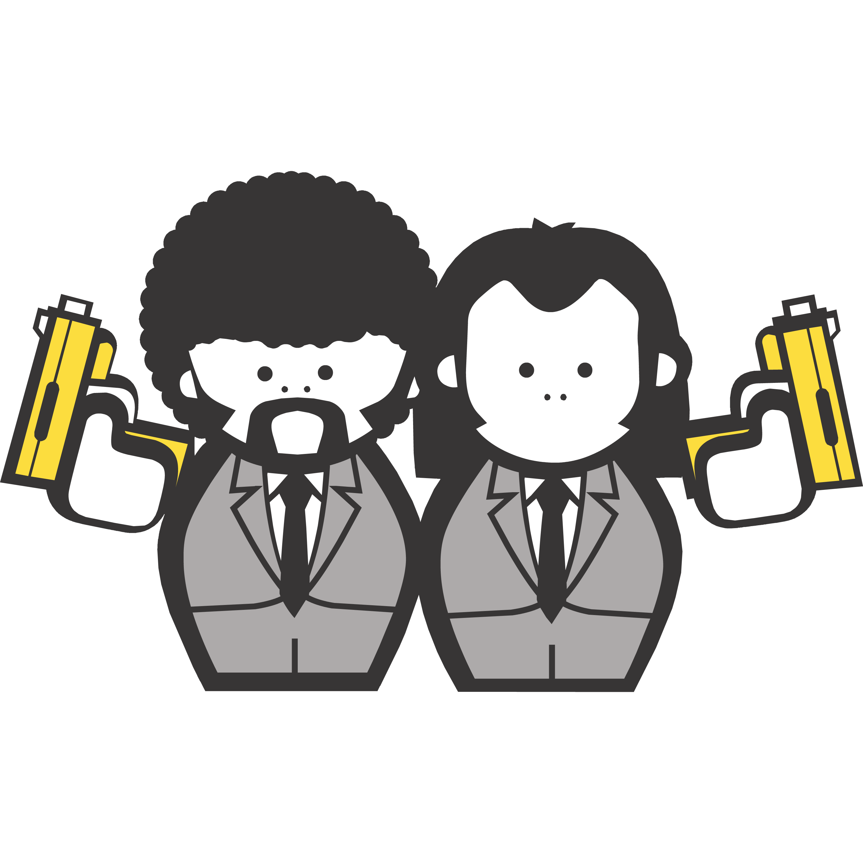 Jules Winnfield y Vincent Vega, el gran dúo de Pulp Fiction de Tarantino. Decora lo que quieras con estos dos mafiosos, grandes no sólo en la pantalla, ¡sino también en cualquier camiseta o artículo de regalo!